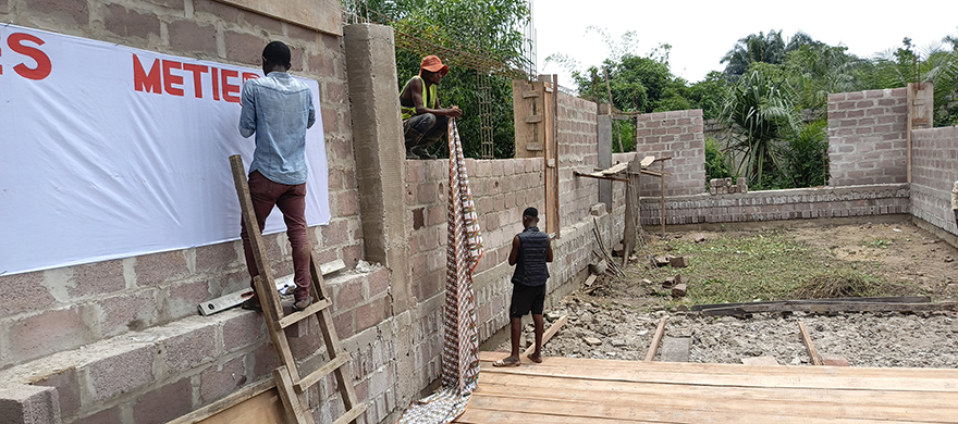 Naar daar.Muasi Mosala op de PÔLE DE MÉTIERS MIKONDO, precies tussen de wijken Mikondo en Badara in (onder)