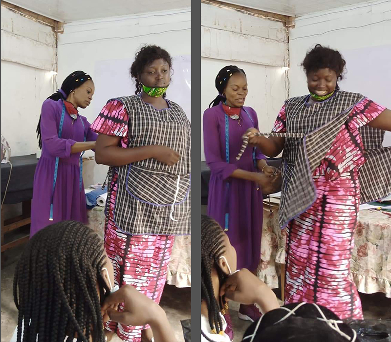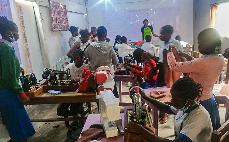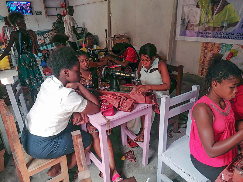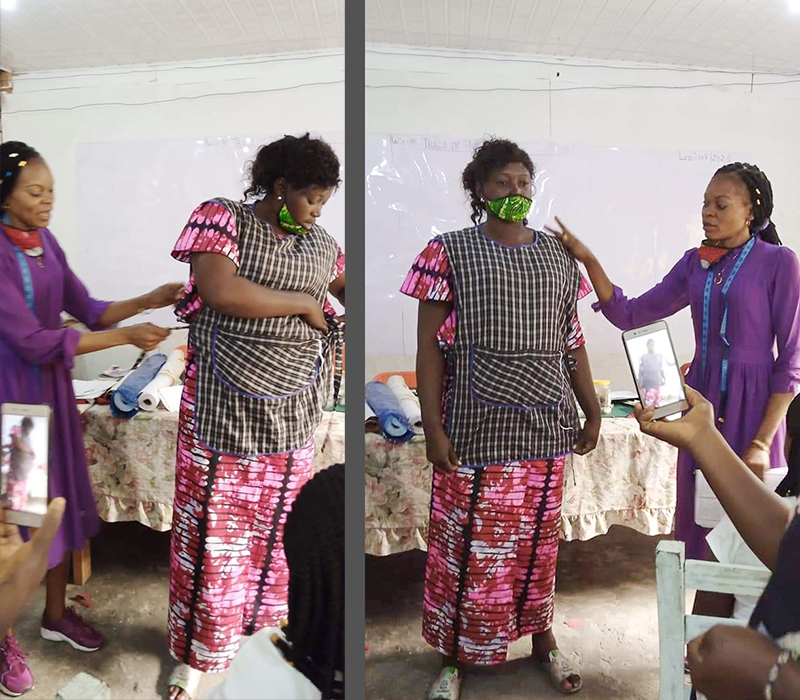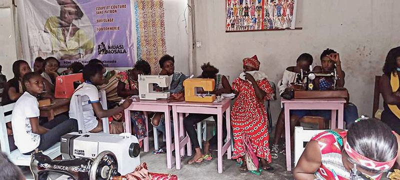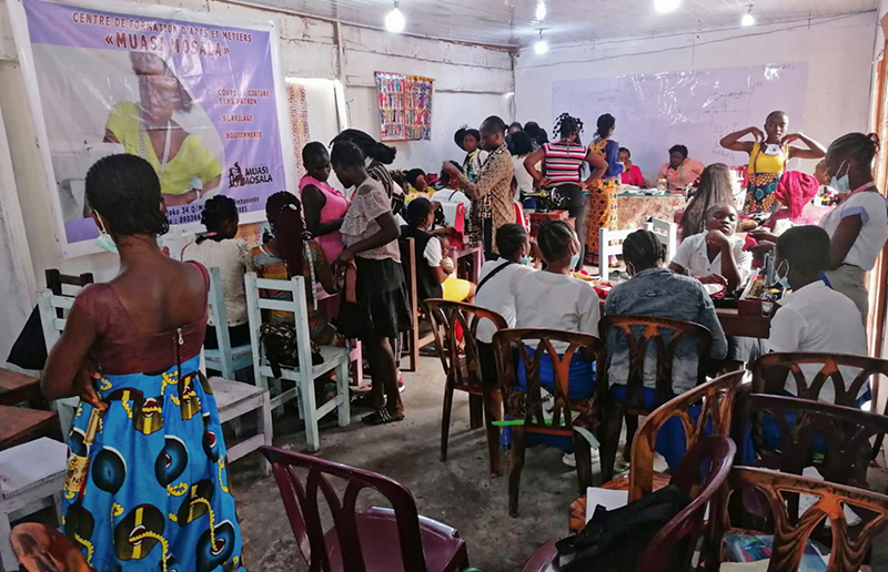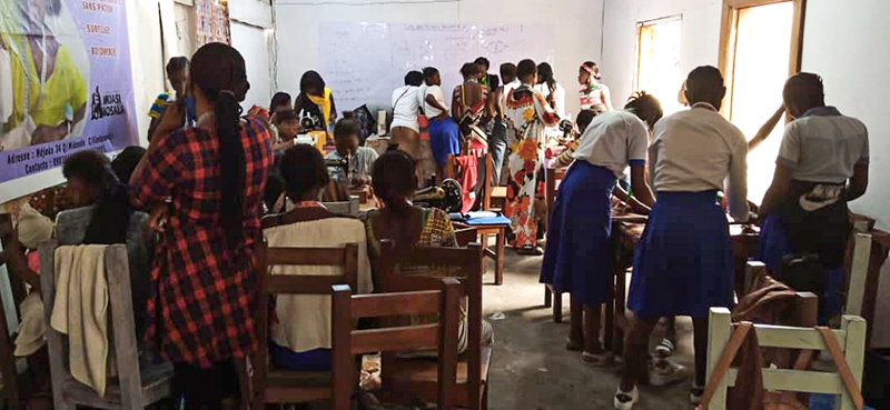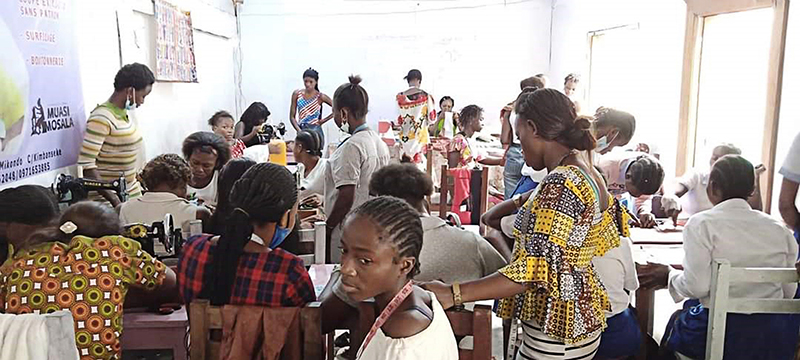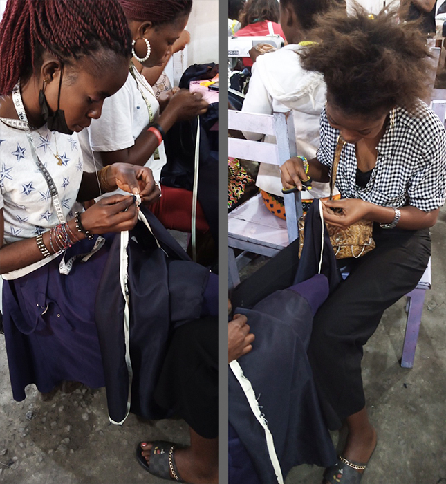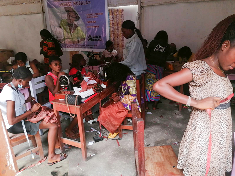![]() Eind 2020 verrees in Mikondo aan de hoofdstraat een Centrum met de naam MUASI MOSALA, vlak naast de school LA TULIPE. Al gauw ging het als een lopend vuurtje dat PROJETS MIKONDO daar een Naaischool zou beginnen. Speciaal voor jonge meisjes en kindmoedertjes, zodat die daar een mooi beroep konden leren om zo zichzelf te kunnen redden. ![]() ![]() Nog voor de inschrijving begon werd er proefgedraaid in de grote nieuwe zaal. De leerlingen van LA TULIPE met als hoofdvak COUPE ET COUTURE vonden het maar wat leuk om daarbij een rol te spelen. ![]() ![]() ![]() Hun juf probeerde het bord uit door een patroon erop te tekenen. De leerlingen vonden het reuze gemakkelijk dat er zo'n grote tafel was om aan te werken. ![]() ![]() Nadat er een dag of vier open dagen waren gehouden waar belangstellende meisjeskonden proberen iets te naaien, werd op 25 juni een grote vergadering gehouden. ![]() De twee leraressen Marie en Joelle werden voorgesteld bij naam en toenaam en alle aanwezigen achter de tafel ook. Zij zijn de leiding van dit project en zullen altijd aanspreekpunt zijn. ![]() Enkele mensen van de leiding van Projet Mikondo legden uit dat deze Naaischool nu iets anders zou zijn dan de school LA TULIPE. Het verschil: dit is nu MEER EEN SOCIAAL PROJECT. ![]() En toen was het de beurt aan de meisjes om het woord te nemen. Hoe verloopt een dag van je leven als meisje in Mikondo, was de vraag. ![]() De een na de ander vertelde daar openhartig over. Over het gebrek aan inkomen. En dat er niets te doen was voor hen. ![]() Aan de meisjes werd ook gevraagd: hoe zouden jullie geholpen kunnen worden? Wat zijn jullie verwachtingen? ![]() Toen ieder die wilde was uitgesproken, werd door PAPY, de projectleider, uiteengezet hoe het project MUASI MOSALA bedoeld is, en of ze daar iets in zagen. ![]() De reactie van de meisjes was duidelijk heel positief! Het zou heel belangrijk voor hun leven zijn. Dat kon je al zien na die paar dagen, werd gezegd, want nu waren er al meisjes die nota bene een rok hadden gemaakt! En anderen ontdekten nog andere dingen. ![]() "Ga alsjeblieft hiermee door", was de algemene conclusie. (Maar later is er nog wel meer en openhartiger gesproken, en durfde de een na de ander het voorbeeld te volgen van de meest vrijmoedigen zodat de leiding beter ging begrijpen waarmee deze meisjes het best geholpen kunnen worden.) ![]() ![]() Tenslotte werden er nog een paar leuke groepsfoto's gemaakt. ![]() ![]() ![]() ![]() Na de oefening afmeten, knippen en naaien met de bruine effen gladde stof, voor een rokje, raakte de zaal elke dag al voller en voller met meisjes. ![]() ![]() ![]() ![]() ![]() ![]() ![]() ![]() Tussendoor zijn de meisjes van LA TULIPE met Naaien als hoofdvak ook nog een dag geweest, omdat ze op school minder de ruimte hadden. Maar die hadden een eigen oefening als voorbereiding op hun eindexamen. ![]() ![]() ![]() De tweede oefening : hoe maak je een mondkapje (cache nez) Eerst theorie, met een patroon op het bord getekend. En de maten. En toen de praktijk. ![]() ![]() De derde oefening werd het maken van een schort. De slanke juf gaf uitleg door een geruit model aan te passen bij de corpulente juf. Iedereen kon zo zien hoe dat technisch in elkaar stak.Theorie dus, maar heel aanschouwelijk. ![]() ![]() ![]() ![]() Alle meisjes konden daarna met de effen zwarte stof aan de gang. ![]() ![]() Afmeten, knippen, naaien, ![]() En tenslotte werd het object rondom afgebiesd met wit. Zo werd het een heel mooi en praktisch werkstuk om vanaf nu elke lesdag te dragen. ![]() ![]() NAAR BOVEN |
