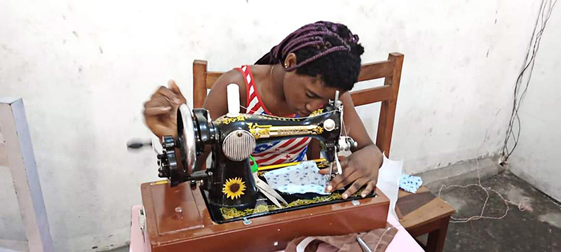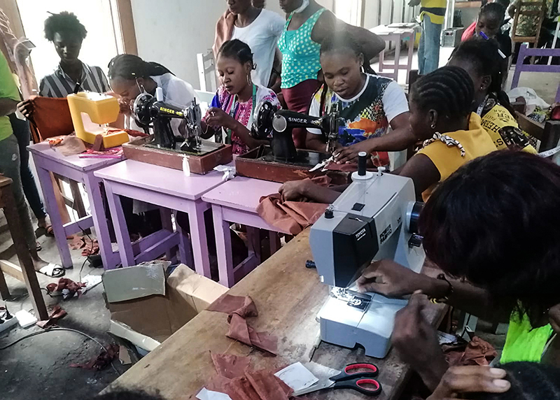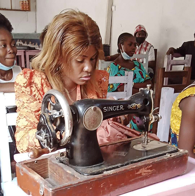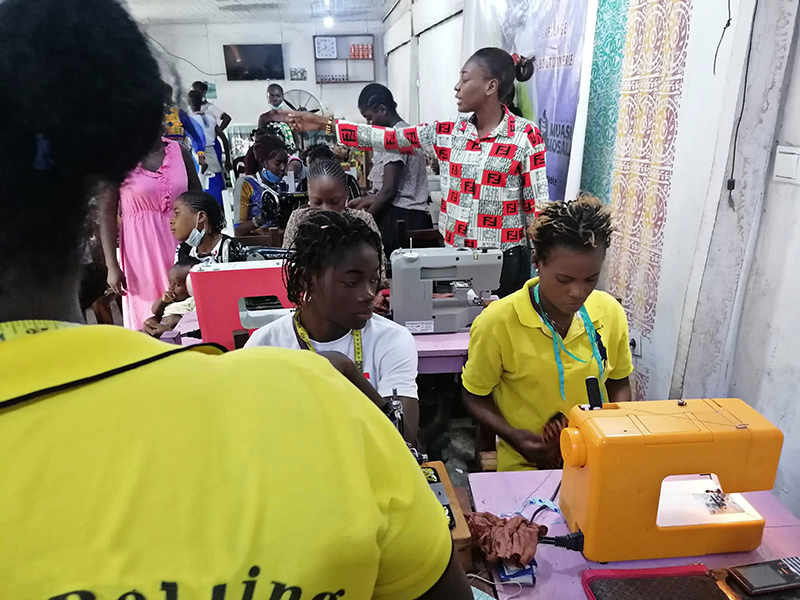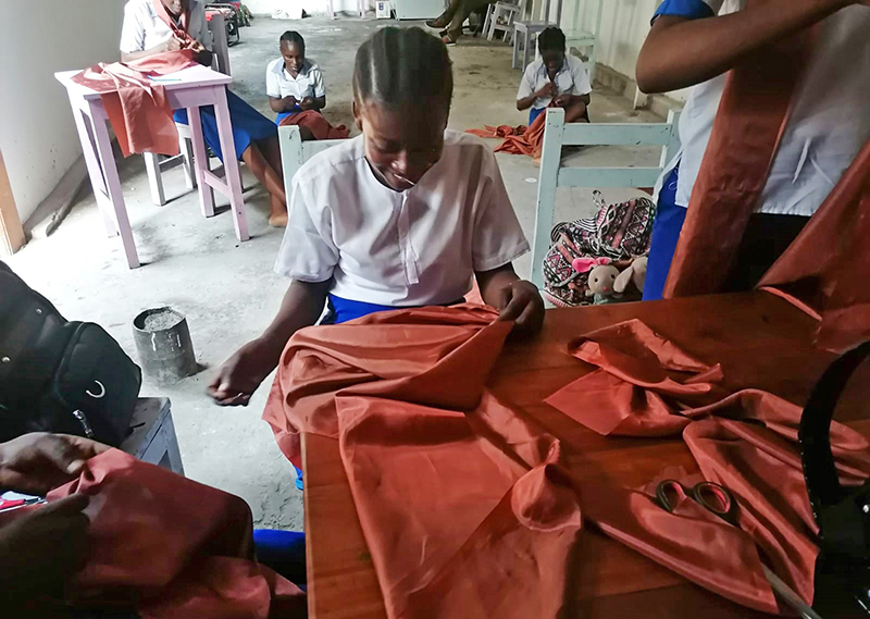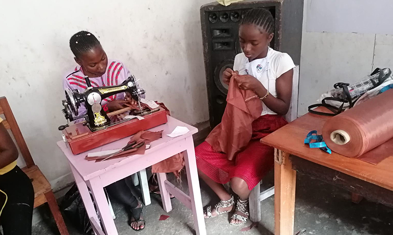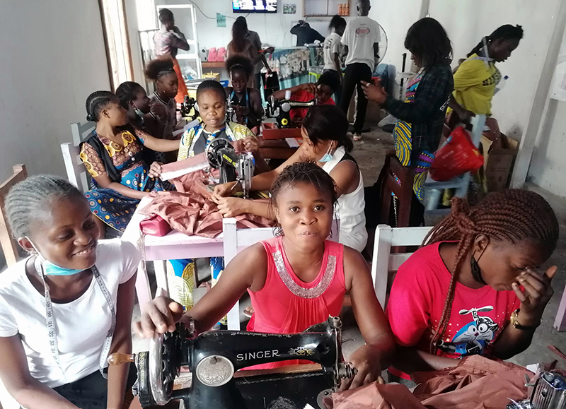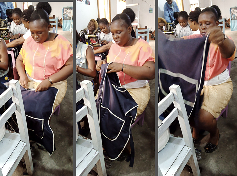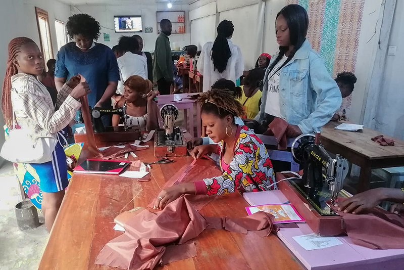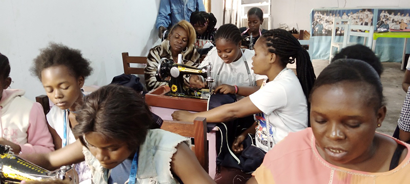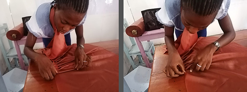 ![]() Eind 2020 verrees in Mikondo aan de hoofdstraat een Centrum met de naam MUASI MOSALA, vlak naast de school LA TULIPE. Al gauw ging het als een lopend vuurtje dat PROJETS MIKONDO daar een Naaischool zou beginnen. Speciaal voor jonge meisjes en kindmoedertjes, zodat die daar een mooi beroep konden leren om zo zichzelf te kunnen redden. ![]() ![]() Nog voor de inschrijving begon werd er proefgedraaid in de grote nieuwe zaal. De leerlingen van LA TULIPE met als hoofdvak COUPE ET COUTURE vonden het maar wat leuk om daarbij een rol te spelen. ![]() ![]() ![]() Hun juf probeerde het bord uit door een patroon erop te tekenen. De leerlingen vonden het reuze gemakkelijk dat er zo'n grote tafel was om aan te werken. ![]() ![]() Nadat er een dag of vier open dagen waren gehouden waar belangstellende meisjeskonden proberen iets te naaien, werd op 25 juni een grote vergadering gehouden. ![]() De twee leraressen Marie en Joelle werden voorgesteld bij naam en toenaam en alle aanwezigen achter de tafel ook. Zij zijn de leiding van dit project en zullen altijd aanspreekpunt zijn. ![]() Enkele mensen van de leiding van Projet Mikondo legden uit dat deze Naaischool nu iets anders zou zijn dan de school LA TULIPE. Het verschil: dit is nu MEER EEN SOCIAAL PROJECT. ![]() En toen was het de beurt aan de meisjes om het woord te nemen. Hoe verloopt een dag van je leven als meisje in Mikondo, was de vraag. ![]() De een na de ander vertelde daar openhartig over. Over het gebrek aan inkomen. En dat er niets te doen was voor hen. ![]() Aan de meisjes werd ook gevraagd: hoe zouden jullie geholpen kunnen worden? Wat zijn jullie verwachtingen? ![]() Toen ieder die wilde was uitgesproken, werd door PAPY, de projectleider, uiteengezet hoe het project MUASI MOSALA bedoeld is, en of ze daar iets in zagen. ![]() De reactie van de meisjes was duidelijk heel positief! Het zou heel belangrijk voor hun leven zijn. Dat kon je al zien na die paar dagen, werd gezegd, want nu waren er al meisjes die nota bene een rok hadden gemaakt! En anderen ontdekten nog andere dingen. ![]() "Ga alsjeblieft hiermee door", was de algemene conclusie. (Maar later is er nog wel meer en openhartiger gesproken, en durfde de een na de ander het voorbeeld te volgen van de meest vrijmoedigen zodat de leiding beter ging begrijpen waarmee deze meisjes het best geholpen kunnen worden.) ![]() ![]() Tenslotte werden er nog een paar leuke groepsfoto's gemaakt. ![]() ![]() ![]() ![]() Na de oefening afmeten, knippen en naaien met de bruine effen gladde stof, voor een rokje, raakte de zaal elke dag al voller en voller met meisjes. ![]() ![]() ![]() ![]() ![]() ![]() ![]() ![]() Tussendoor zijn de meisjes van LA TULIPE met Naaien als hoofdvak ook nog een dag geweest, omdat ze op school minder de ruimte hadden. Maar die hadden een eigen oefening als voorbereiding op hun eindexamen. ![]() ![]() ![]() De tweede oefening : hoe maak je een mondkapje (cache nez) Eerst theorie, met een patroon op het bord getekend. En de maten. En toen de praktijk. ![]() ![]() De derde oefening werd het maken van een schort. De slanke juf gaf uitleg door een geruit model aan te passen bij de corpulente juf. Iedereen kon zo zien hoe dat technisch in elkaar stak.Theorie dus, maar heel aanschouwelijk. ![]() ![]() ![]() ![]() Alle meisjes konden daarna met de effen zwarte stof aan de gang. ![]() ![]() Afmeten, knippen, naaien, ![]() En tenslotte werd het object rondom afgebiesd met wit. Zo werd het een heel mooi en praktisch werkstuk om vanaf nu elke lesdag te dragen. ![]() ![]() NAAR BOVEN |