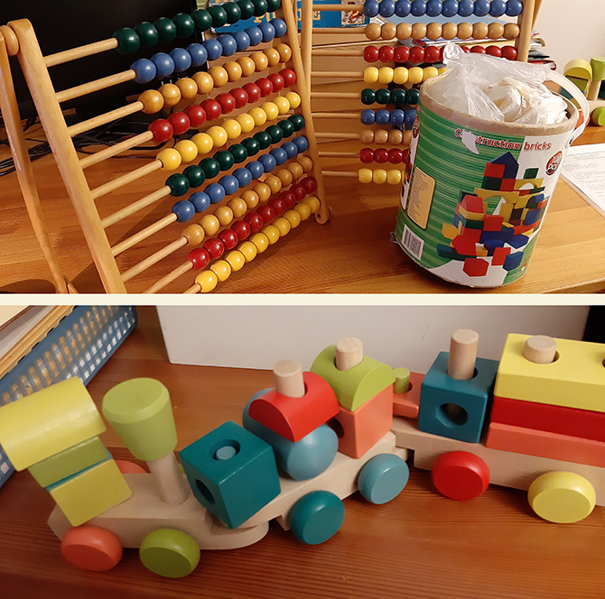 Van het een komt het ander. Doordat we weer eens konden bijpraten aan de telefoon, en vertelden dat er voor de kleuters van La Tulipe helemaal geen spelmaterialen waren, werd deze informatie meteen doorgespeeld aan een Opleidingsschool in Katwijk. Daar ontstond grote sympathie voor ons werk bij de teamleden en zo werden we in no time verrast met een berg prachtig lesmateriaal voor de kleuters, speciaal per auto gebracht. En dat terwijl kort daarvoor al een vracht aan pennen ook al uit Katwijk was aangevoerd! Wat een kostbare hulp! Voor ons niet te begrijpen haast, maar zelfs een pen is een kostbaar werktuig in straatarme context. Bijvoorbeeld: Een leraar van La Tulipe die zijn pen is kwijtgeraakt, kan er van school een nieuwe krijgen, maar moet er dan wel tien cent voor betalen. (Tien cent voor mensen die in extreme armoede leven is heel wat meer dan bij ons natuurlijk.)